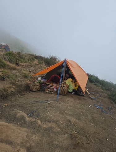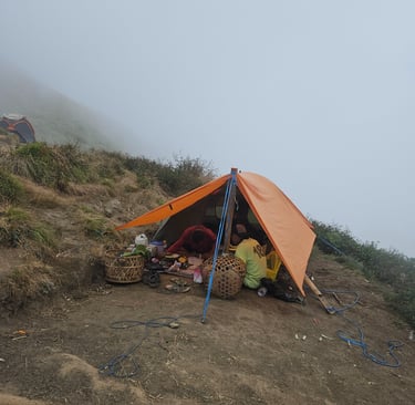 Ils sont aussi cuisiniers car ils te préparent tous tes repas et tes cafés ou thés pendant toute la durée du trek.Arrivée au camp qui se situe à 2800m. Ta tente est déjà installée avec ton sac de couchage dedans et un thé avec des petits gateaux t'attendent : les porteurs arrivent bien avant toi !
