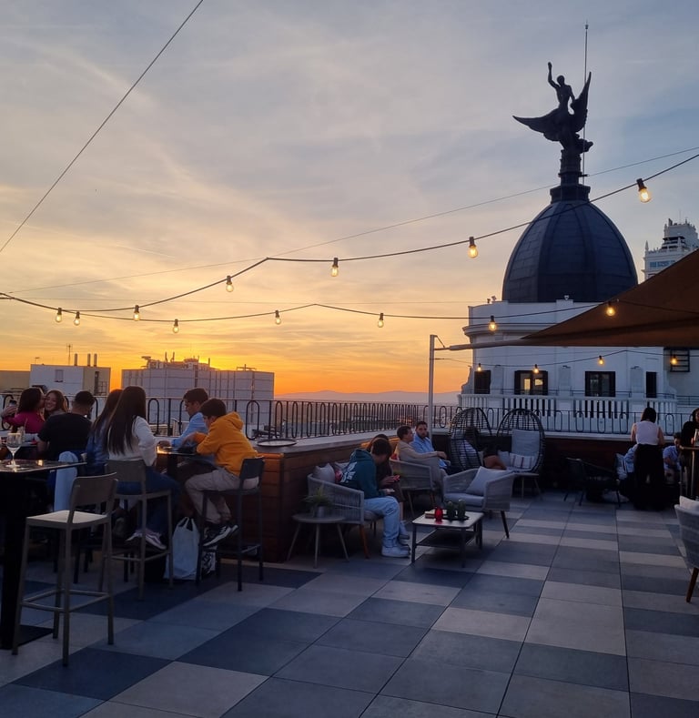 Vincci Vía 66 rooftop – End your trip on a high note with a drink at this rooftop bar, one my favorites one for its stunning views of Gran Vía, Madrid’s famous shopping street.